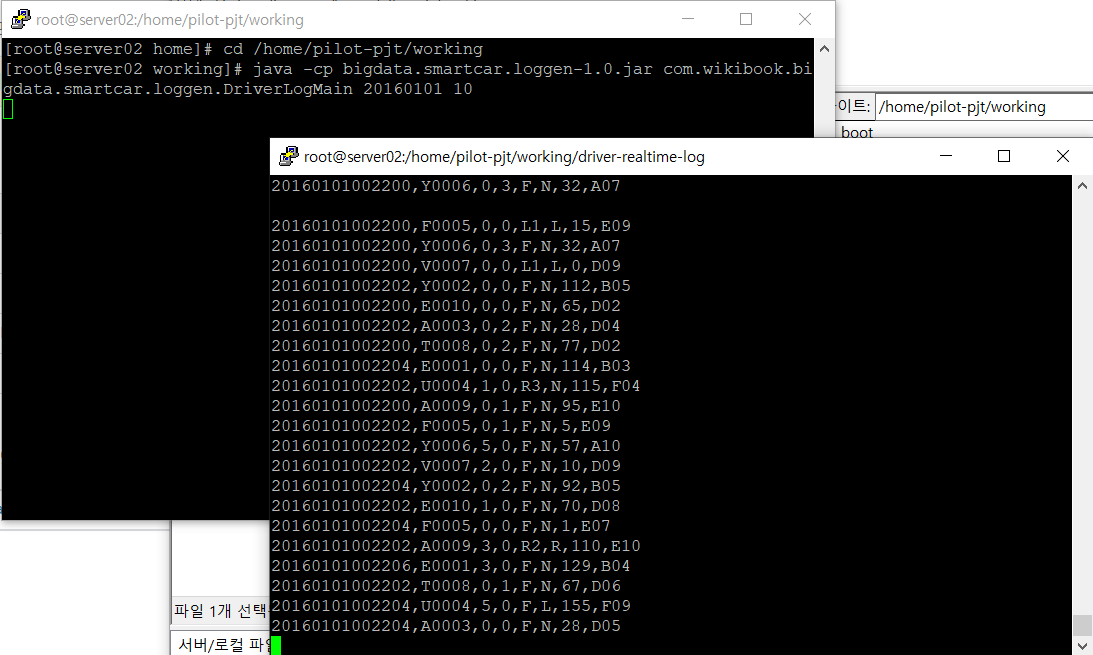java -cp bigdata.smartcar.loggen-1.0.jar com.wikibook.bigdata.smartcar.loggen.DriverLogMain 20160101 10