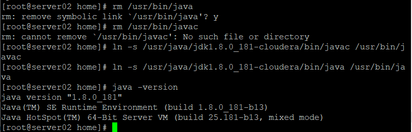 ln -s /usr/java/jdk1.8.0_181-cloudera/bin/java /usr/bin/java