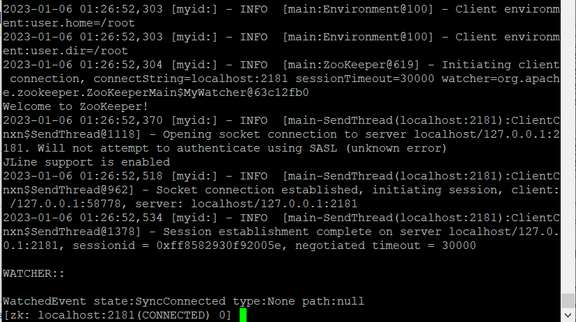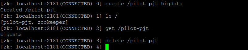 - bigdata를 담고 있는 pilot-pjt 라는 znode 생성, 조회, 삭제