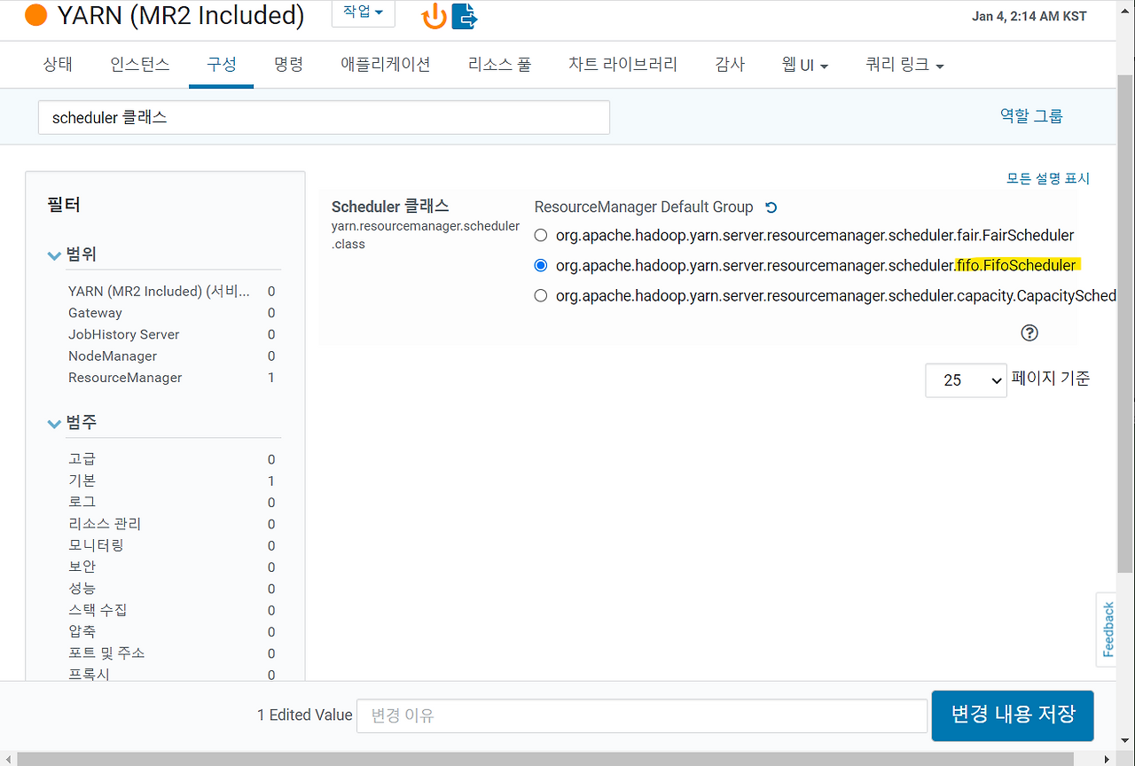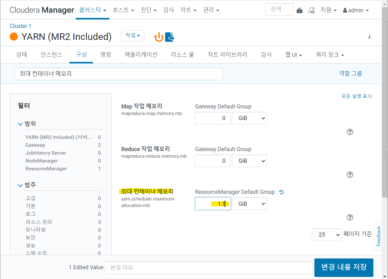 - YARN 스케줄러와 리소스매니저 메모리 크기 설정
