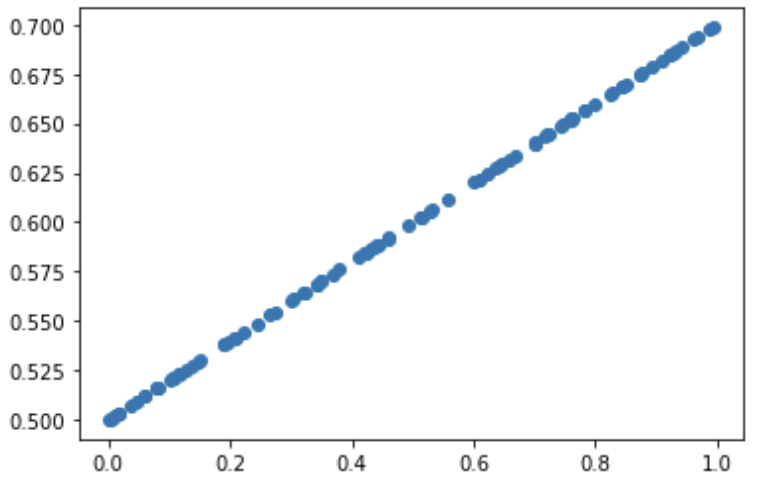 Y = 0.2 * X + 0.5 # 실제값 함수 가정
