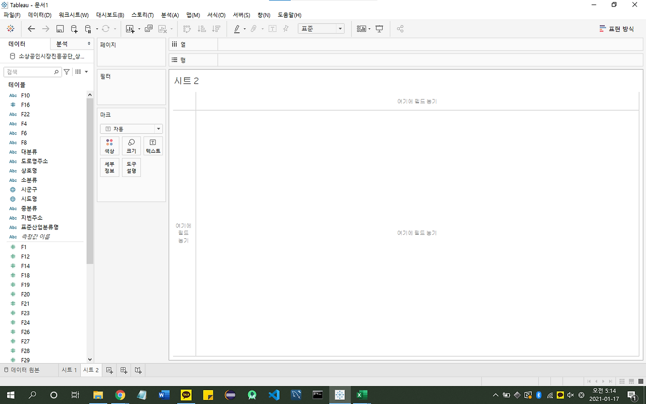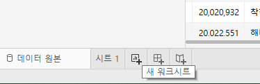 본격적으로 시각화를 하기 위해 시트1 옆에 있는 작은 버튼 (새 워크시트) 을 눌러준다.