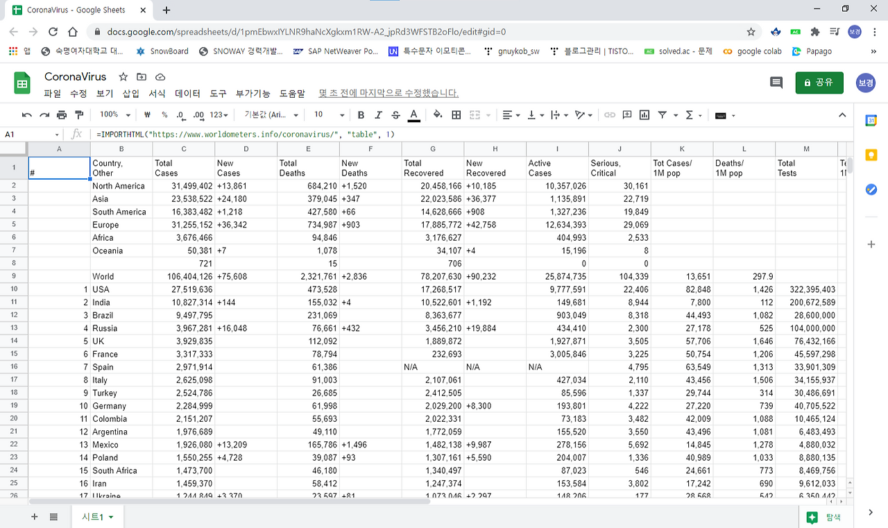 2. 서버 데이터 - 구글 스프레드 시트 활용하여 연결