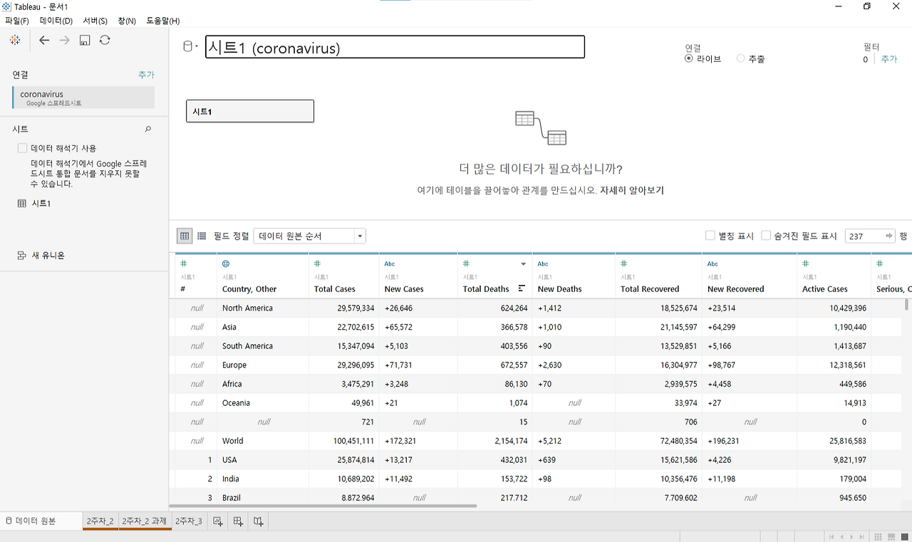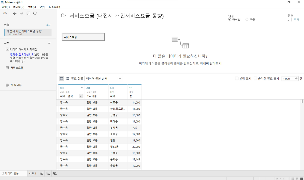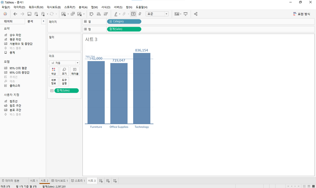 [Tableu] 기초 시각화 연습